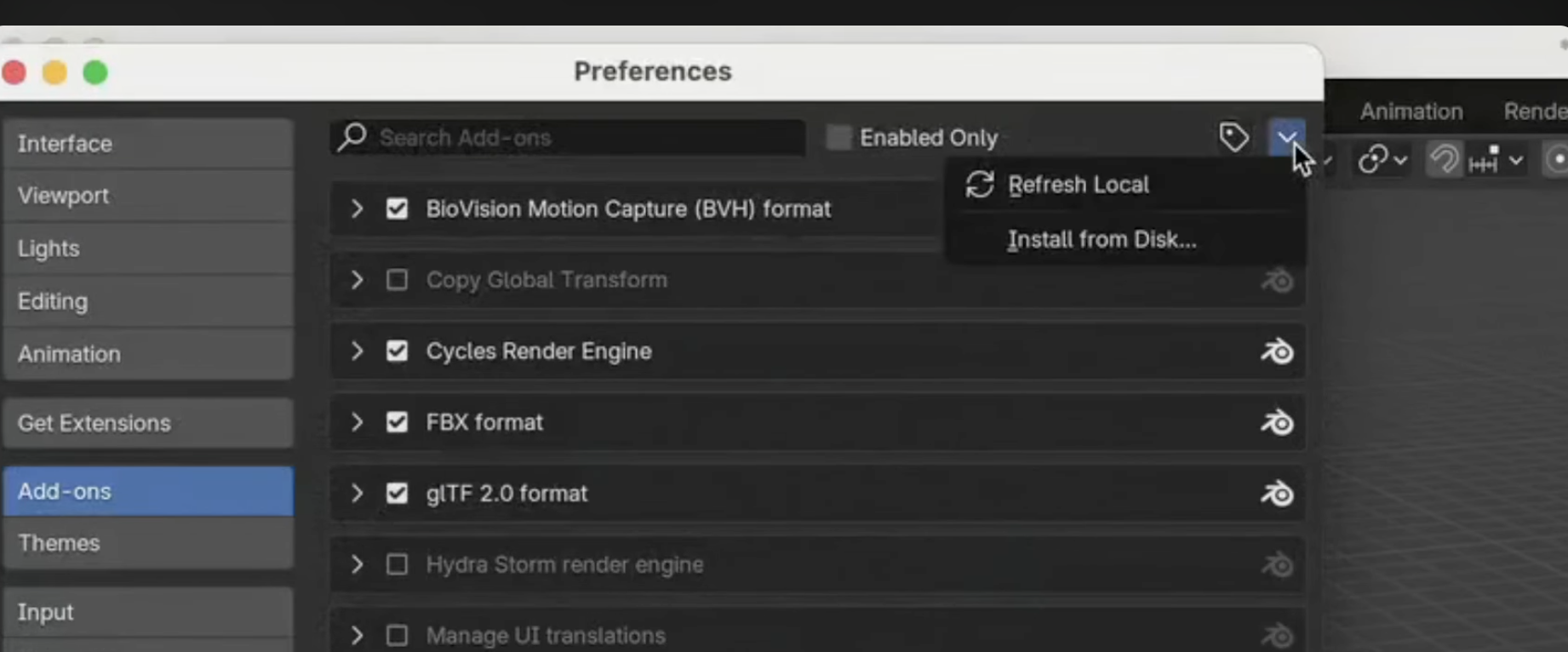 - blender-mcp 저장소에서 최신 릴리즈의 Add-on 파일(.zip) 혹은 Python 파일(.py) 다운로드