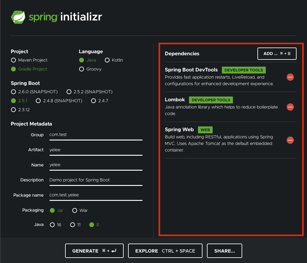 이후에는 필요에 따라 dependency를 추가해나가면 된다