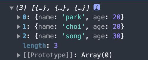 { name: 'choi', age: 20 },