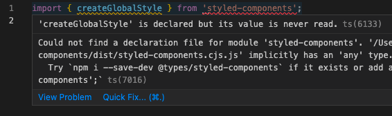 npm i --save-dev @types/styled-components